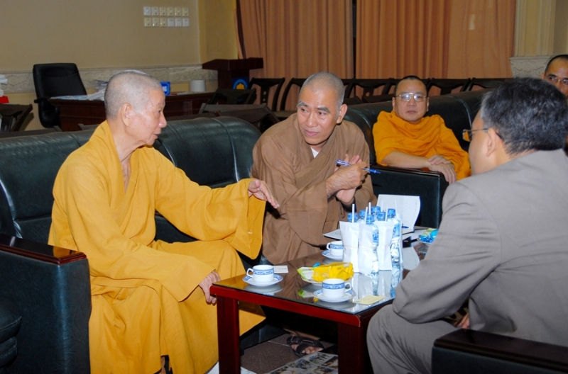 Sáng 9-1-2014, đại diện 2 văn phòng lãnh sự quán Ấn Độ và Mỹ tại Việt Nam do ông Deepak Mittal, lãnh sự quán Ấn Độ và ông Jonathan Hwang, viên chức lãnh sự quán Mỹ lần lượt đến HVPGVN-TPHCM để gặp gỡ và trao đổi với HT.Thích Trí Quảng, viện trưởng cùng các vị phó viện trưởng trong hội đồng điều hành học viện.